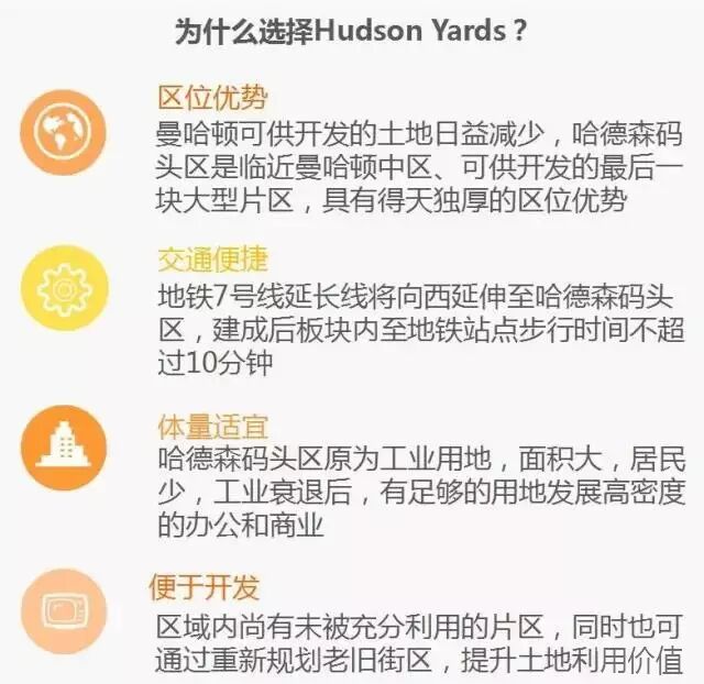 而哈德逊城市广场作为临近曼哈顿中城区的最后一块可供开发的最大片区,东接中城区,西邻哈德逊河,得天独厚的地理优势使得创建一个全新的商业与住宅综合区成为可能。这将使码头区重新焕发活力,从而促进West Midtown(远西中城区)重建,并确保纽约经济得以持续发展。