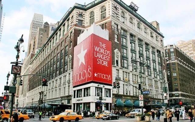著名连锁百货公司Macy‘s将它的旗舰店开在纽约市的海诺德广场。这家百货公司的鼻祖以其红底白色五角星的高辨识度LOGO为人所知。