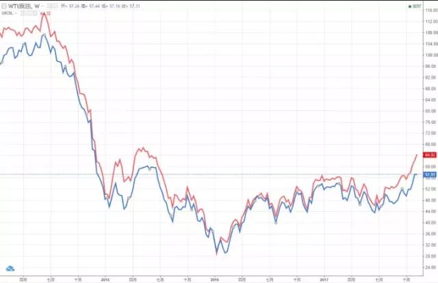 而上周末布油、美油更是双双创下两年多以来的历史新高。布伦特原油期货一度升破64.40美元,刷新2015年7月以来高位;WTI原油期货升破57美元,创2015年6月以来收盘新高,为2015年7月以来最高。