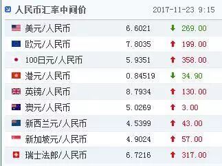 据中国外汇交易中心今日公布数据显示,11月23日人民币对美元汇率中间价报6.6021元,上调269个基点。
