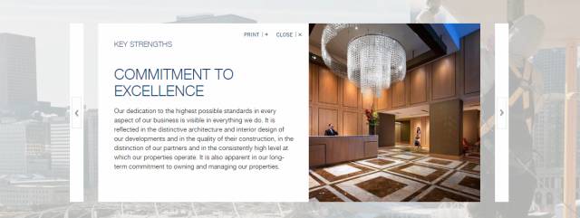 无论是从独特的建筑到室内的设计,还是从合作的伙伴到物业的经营。该公司都在行业里具有最顶尖的经验与随之而来最长久的信誉。