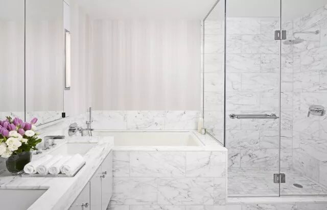 MIMA浴室配备了Jamie Drake 独家定制的浴室各式配件、Kohler(科勒) Tea-for-Two 浴缸、日本 TOTO 高品质坐便器等。