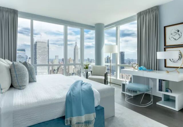 Manhattan View at MiMA是第九大道以西最高的公寓。在北面可以俯瞰低层的地狱厨房(Hell’s Kitchen),远眺乔治华盛顿大桥和中央公园的绿色景致。在东面可以看到曼哈顿中城的标志性摩天大楼,而在日落时则会化身为灯光之海。在西面则是哈得逊河和USS“无畏者号”,以及毗邻的曼哈顿邮轮码头。