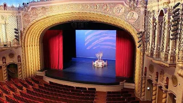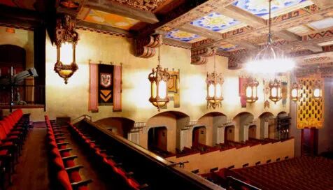 剧场建于1923年至1927年间,建筑师Arthur Burnett Benton以Mission Revival的风格设计了剧场,这座1387座位的剧院在它的彩绘和雕刻天花板上有着美洲原住民的影响,天花板上悬挂着19世纪在船上使用的西班牙灯笼的复制品,西班牙阿方索十三世国王赠送的编织挂毯在剧院的两侧,该剧院拥有一座完全修复的1924年Wurlitzer管风琴,原先为纽约布鲁克林的阿尔比剧院建造。