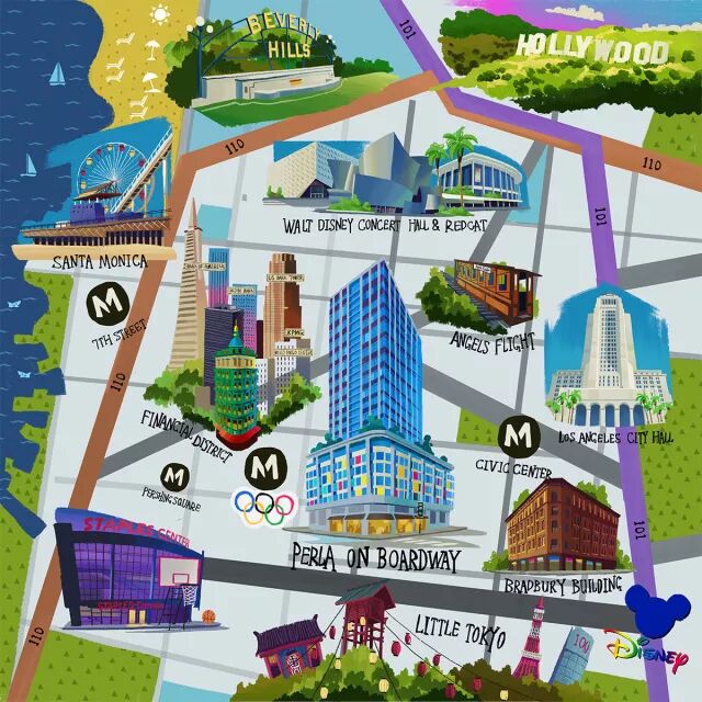 林立四周,是现代艺术博物馆,迪士尼音乐厅,小东京以及洛杉矶市政厅,神圣的圣母大教堂守望在不远处庄严伫立,微风中夹杂斯坦普斯中心的传奇气息还有南加州大学的墨香飘逸。